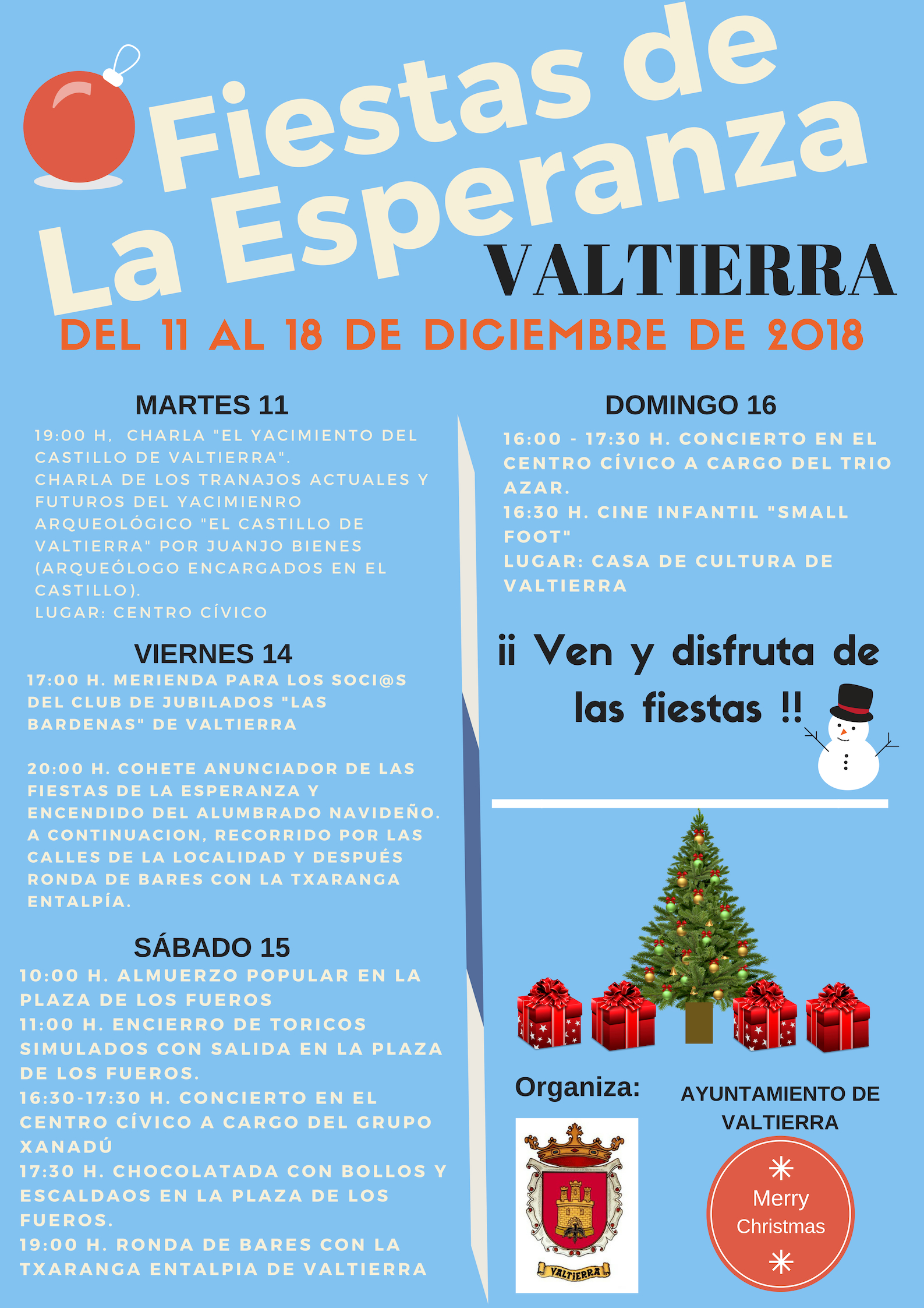 A continuación puedes consultar la programación en Valtierra para diciembre y navidad: