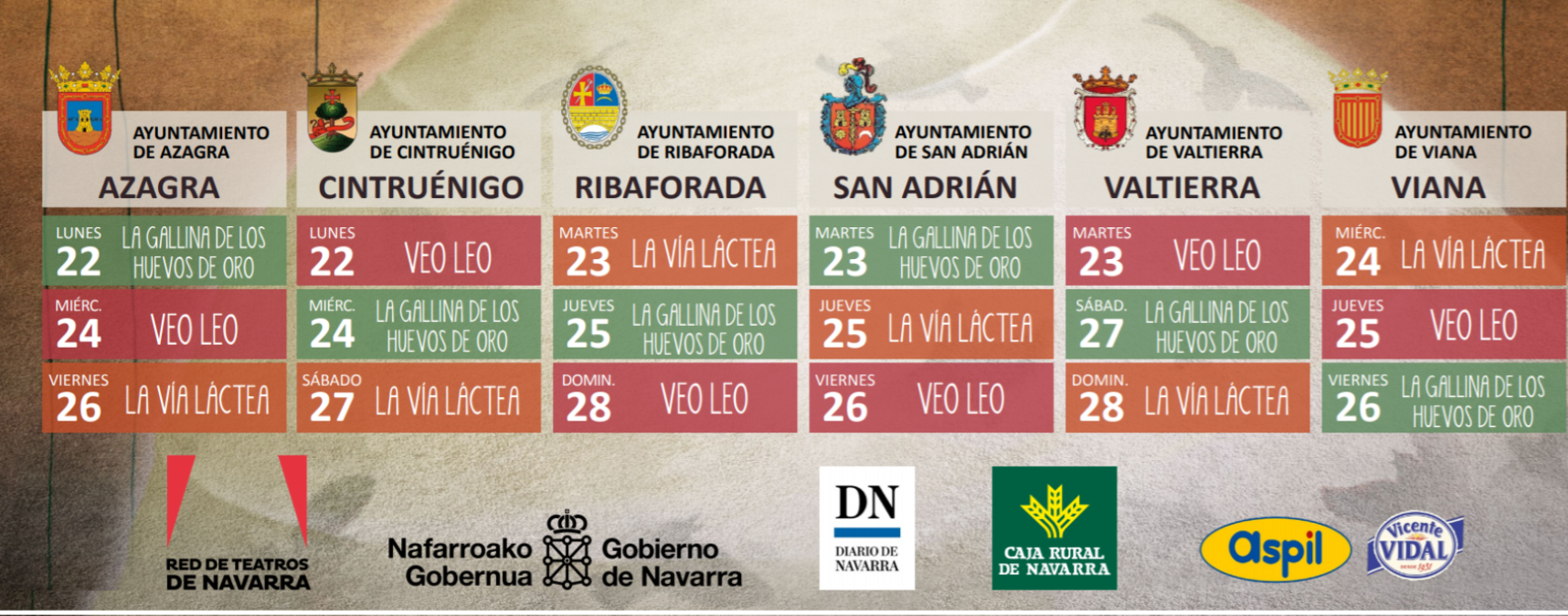 Calendario de titirired en las localidades: