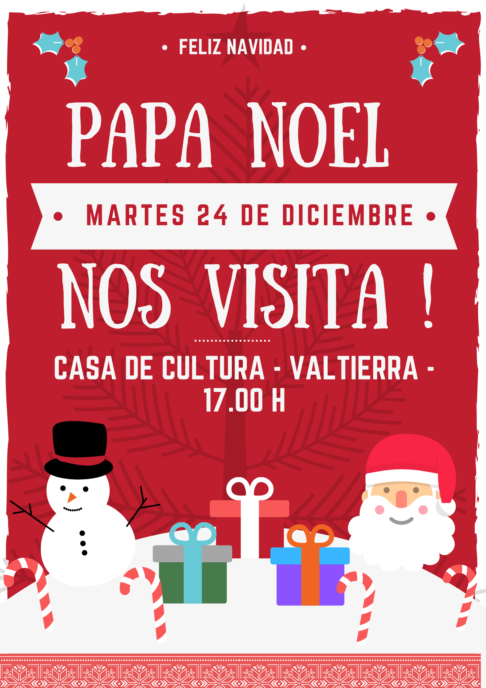 Martes 24 de Diciembre: Visita de Papa Noel en la Casa de cultura de Valtierra a las 17.00h