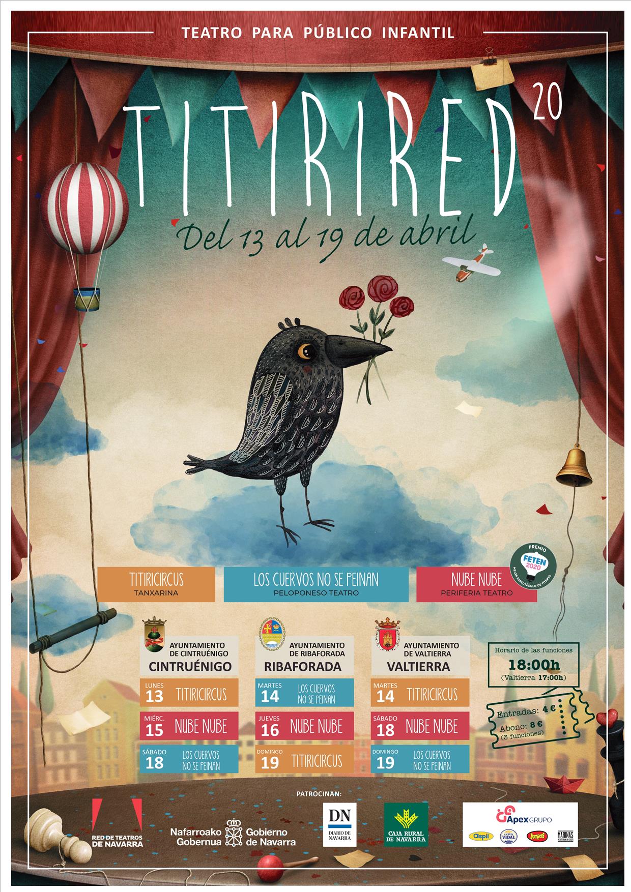 FESTIVAL TITIRIRED 2020 ayuntamientovaltierra9 marzo, 20209 marzo, 2020 Cultura, Destacado, Festivales FESTIVAL TITIRIRED 2020 – CASA DE CULTURA (VALTIERRA) Vídeo Titirired 2020 Consigue tus entradas aquí